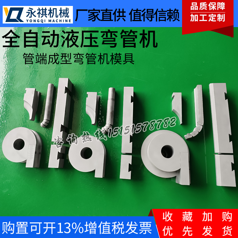 数控弯管机配套模具弯管机模具厂家直销 本店主营多种型号液压数控弯管机,缩管机,扩管机,管材切割机等多种管类成型 设备。设备品质好,精密加工出厂,是管材加工生产厂家合作的不二之选。 弯管机型号:DW18 25 38 50 63 75 89 114 130多种行业通用型号,以及各型号 非标机定制。全自动、半自动弯管机,一应俱全。 弯管机模具:液压数控弯管机模具,整套模具,整体防皱模,分体防皱模,轮模, 滑板模,夹模,拼块,缩管模具,扩管模具。 弯管芯棒:粒球拉杆芯棒,单颗球链条片芯棒,单颗球万向芯棒,方管芯棒,圆管 芯棒,椭圆管芯棒,异形管芯棒,多节式芯棒,链条片芯棒,万向芯棒,多节式芯 棒,钢丝绳芯棒,毛毛虫芯棒。 由于此类产品属于冷门定制产品,每种模具都需要根据您的管材管直径、壁厚、弯 管弧等不同信息进行专业设计制造,以及模具材质的不同,都会影响到您的使用情 况,因此在您下单前还请花费一点时间与客服人员进行沟通,以便采集到您的管材 信息为您定制;如客服人员未能及时对您进行回复,您可以直接致电厂家联系, 咨询热线15151578782